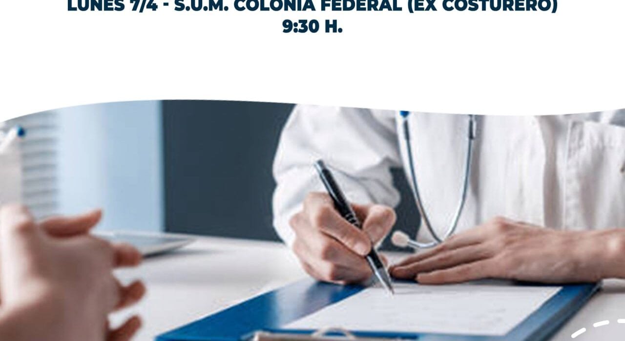 El lunes 7 de abril a las 9:30h se brindará atención médica en el SUM de Colonia Federal (ex Costurero).