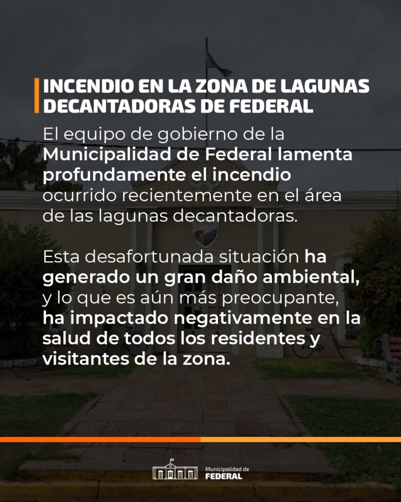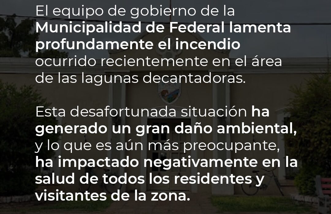 El equipo de gobierno de la Municipalidad de Federal lamenta profundamente el incendio ocurrido recientemente en el área de las lagunas decantadoras.