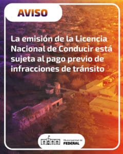 Esta situación se debe al convenio vigente entre la Municipalidad de Federal y la Agencia Nacional de Seguridad Vial (ANSV), el cual impide que la Oficina de Tránsito Municipal emita licencias en caso de infracciones pendientes.
