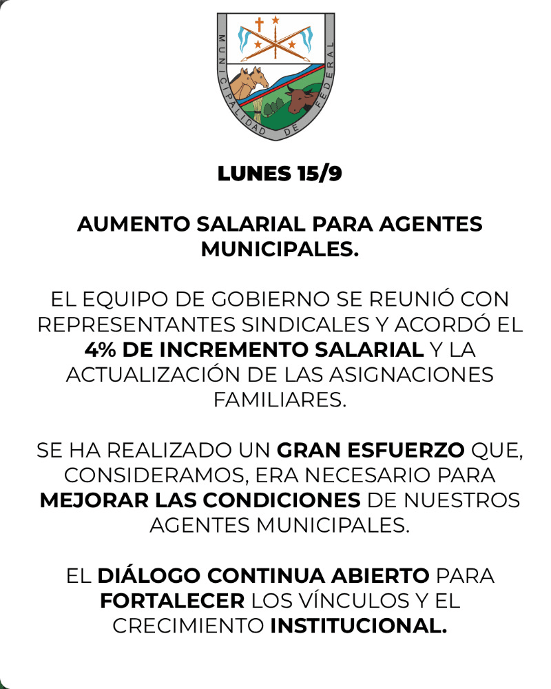 El equipo de gobierno se reunió con representantes sindicales y acordó el 4% de INCREMENTO SALARIAL y la ACTUALIZACIÓN de las ASIGNACIONES FAMILIARES.