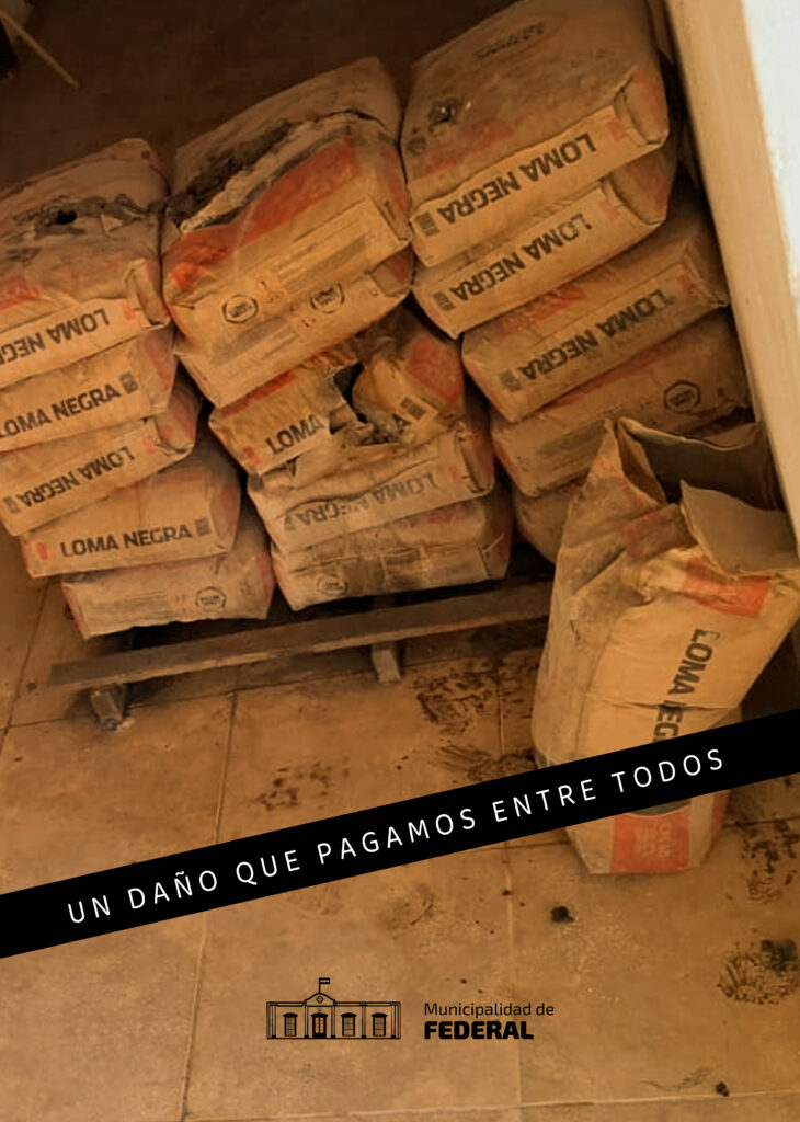 La Municipalidad de Federal informa a la comunidad que, en las últimas horas, se registraron nuevos hechos de vandalismo en el predio del Anfiteatro “Francisco Ramírez”. Este espacio cultural volvió a ser blanco de acciones destructivas que afectaron instalaciones internas, materiales de obra y sectores recientemente acondicionados.